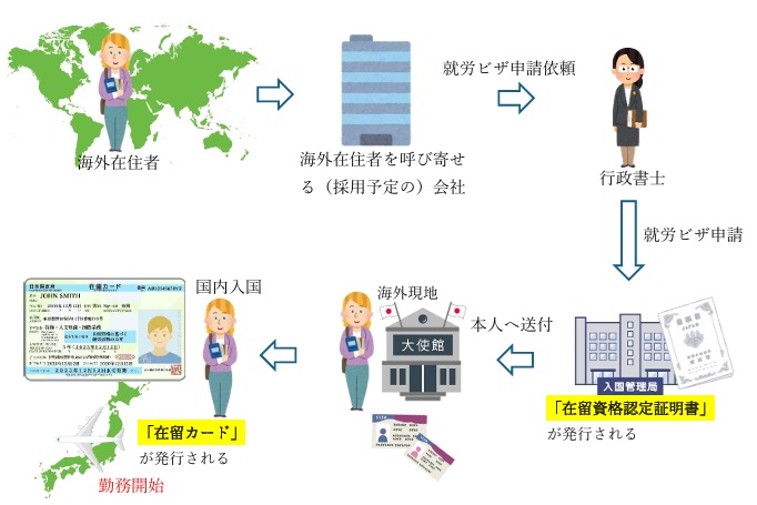 外国人が日本に中長期滞在する目的の在留資格(「短期滞在」を除く)を取得するために、入国前に日本国内で申請する手続きです。